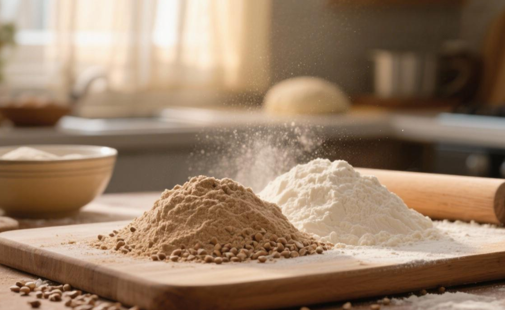做荞麦面,核心就两样:荞麦粉和面粉。荞麦粉是灵魂,它决定了大部分营养和独特的风味。但纯荞麦粉有个问题——它不含面筋(麸质),很难成型,做出来的面条容易断,口感也发黏。所以,我们通常需要搭配面粉来“帮忙”。家庭自制的话,建议从 荞麦粉和面粉比例1:1 开始尝试,这个比例兼顾了荞麦风味和面条的筋道。如果追求更高的荞麦含量,可以尝试7:3,但对面粉筋度(建议用高筋粉)和后续和面、压延技术的要求会高很多。