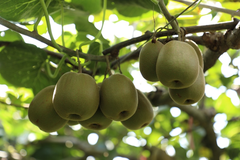 猕猴桃成熟时间不一致,同一棵树上的果子成熟度都可能不同。所以要分批采收,先采树冠外围和上部的,再采内部和下部的。坚决反对“一扫光”的做法。