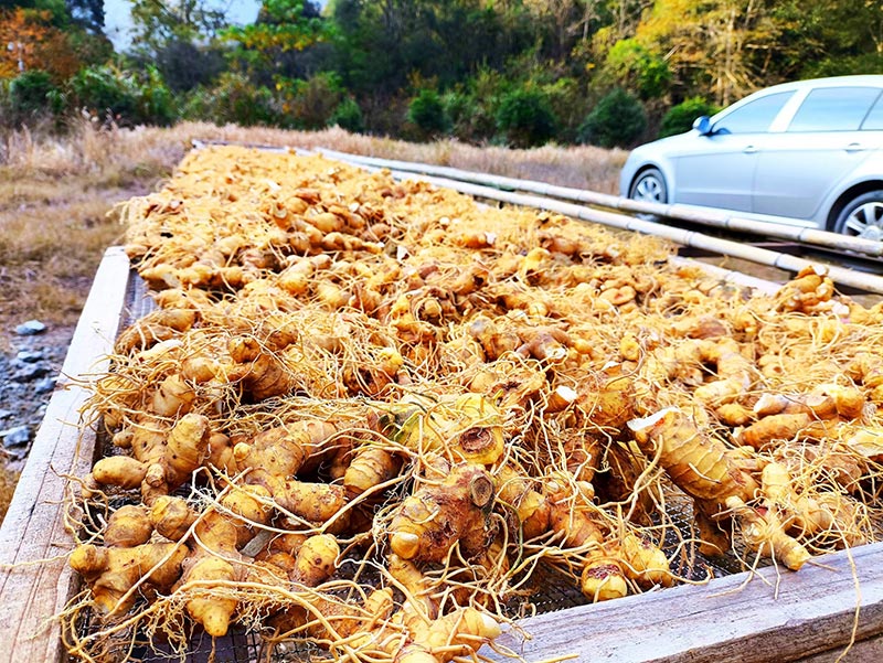 茯苓生长周期较短,6个月就能采收。鲜品亩产约800斤,如果进行初加工,收益还能进一步提升。