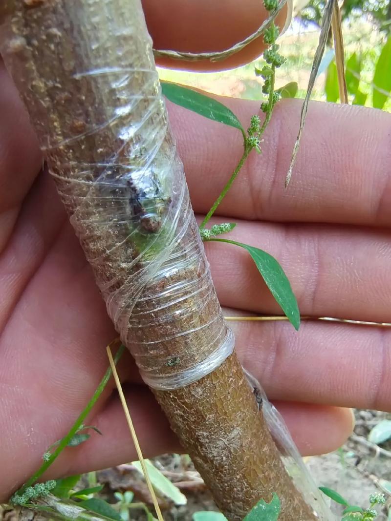 第二,下刀要准,尽量不要伤到木质部。切口不平整容易导致流胶,影响成活。