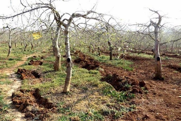 深翻时挖出的病根、枯枝要清理出果园,集中处理。树干要涂白,既能防冻,又能杀虫。涂白剂的配制比例是:生石灰5份、硫磺粉1份、食盐0.5份、水20份。