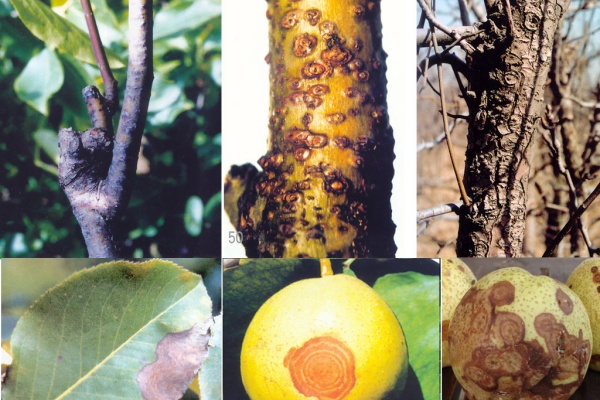 梨轮纹病主要危害枝干和果实。枝干受害时,皮孔突出,产生褐色病斑;果实受害后,表面形成同心轮纹状病斑,后期果实腐烂。防治措施: