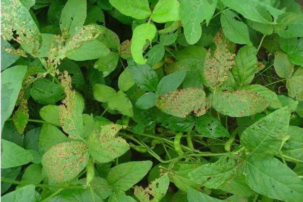 整个生育期都能碰上,茎、荚、叶全啃。典型特征是病斑中间凹陷,边缘红褐,像被指甲按过。连续阴雨天最容易暴发,我邻家的田曾在一周内从青绿变枯黑,连豆荚里都长满黑点儿,收下来只能当饲料。防法: