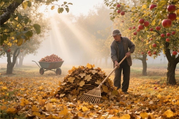 秋季采果后,彻底清理园内病枝、落叶