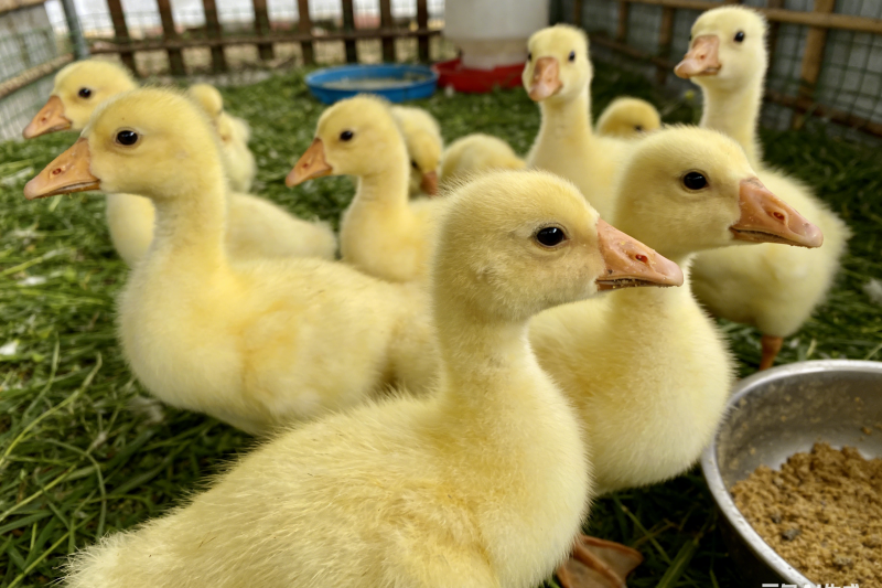 开食方法:先用温水泡过的小米或碎玉米,撒在浅盘或塑料布上,让小鹅学着吃。前三天可以在饲料里加点多维葡萄糖,帮助适应。