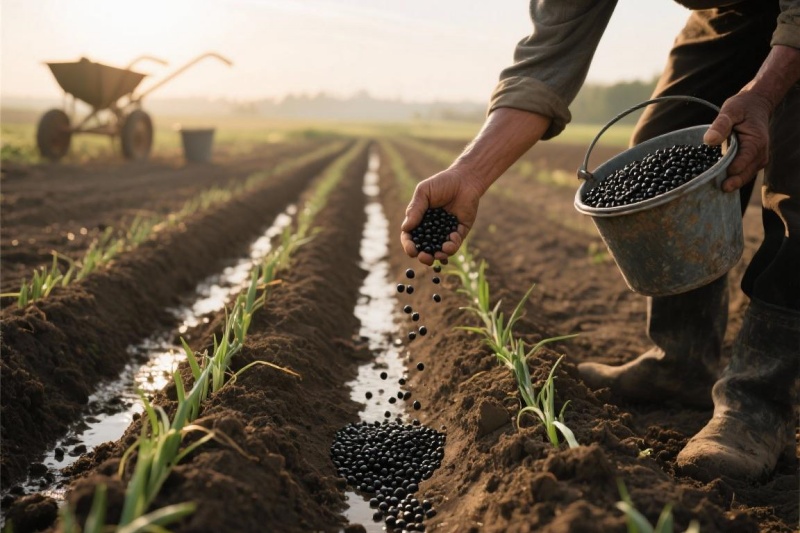 条播:在畦面上开一条条浅沟,沟深约1.5到2厘米,沟距15到20厘米。将种子均匀撒在沟里,然后轻轻覆土,用脚或木板稍微镇压一下,让种子和土壤紧密接触。