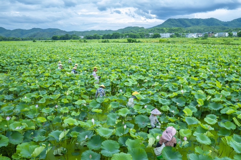 合理安排采收路线,采用合适的工具。熟练工人每天能采50-80公斤鲜莲蓬。