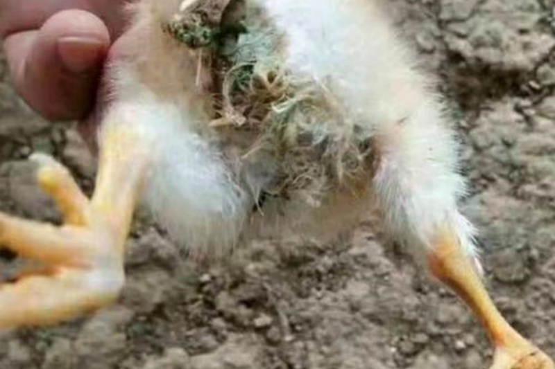 最明显的症状——拉稀:这是它名字的由来。病雏排出白色、石灰浆样的稀粪,常常糊在肛门周围的羽毛上,结成硬块,导致排便困难。