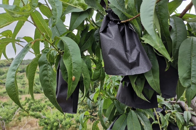 现在市场上有单层袋、双层袋、不同颜色的袋。选择时要考虑:品种特性:黄桃用浅色袋,白桃用深色袋