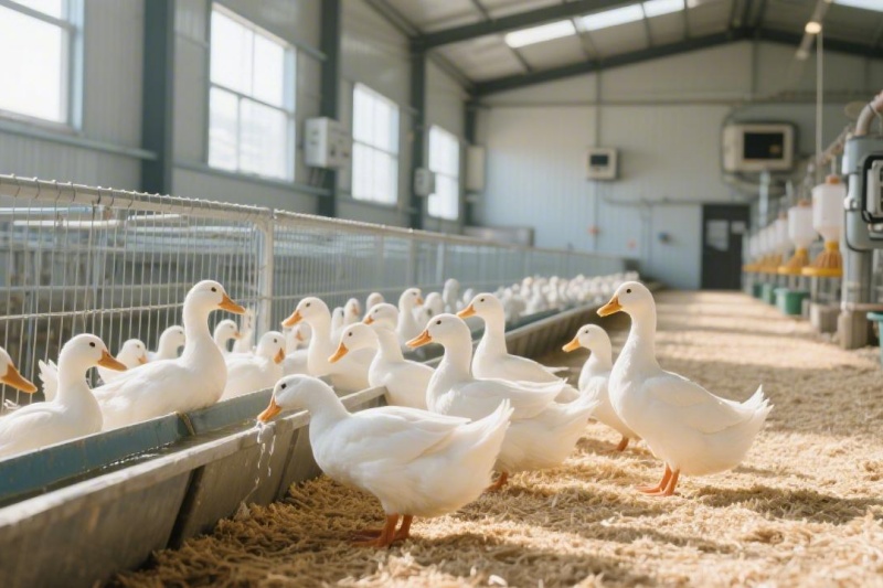 加强管理:控制好鸭舍的温度、湿度和通风条件。雏鸭适宜的温度在28-32℃之间,湿度保持在60%-70%。同时,要保证鸭舍空气新鲜,避免密度过大,减少雏鸭之间的接触和感染机会。