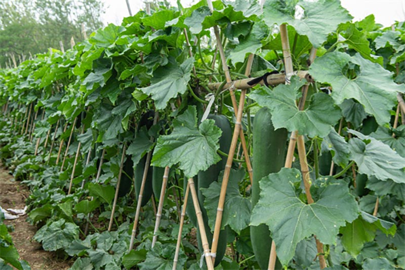 搭架的方式有不少,常见的有单排架、双排架和棚架。单排架适合单行种植的冬瓜,双排架适合双行种植的冬瓜,棚架适合大面积种植的冬瓜。下面我给大家介绍一种简单实用的单排架搭建方法:在冬瓜定植行的两侧,每隔2 - 3米插一根竹竿,竹竿高度2 - 3米,然后在竹竿顶部用铁丝或者绳子把相邻的竹竿连起来,一个单排架就搭好啦。搭好框架后,要检查一下支架稳不稳,不然冬瓜生长过程中倒了可就麻烦啦。