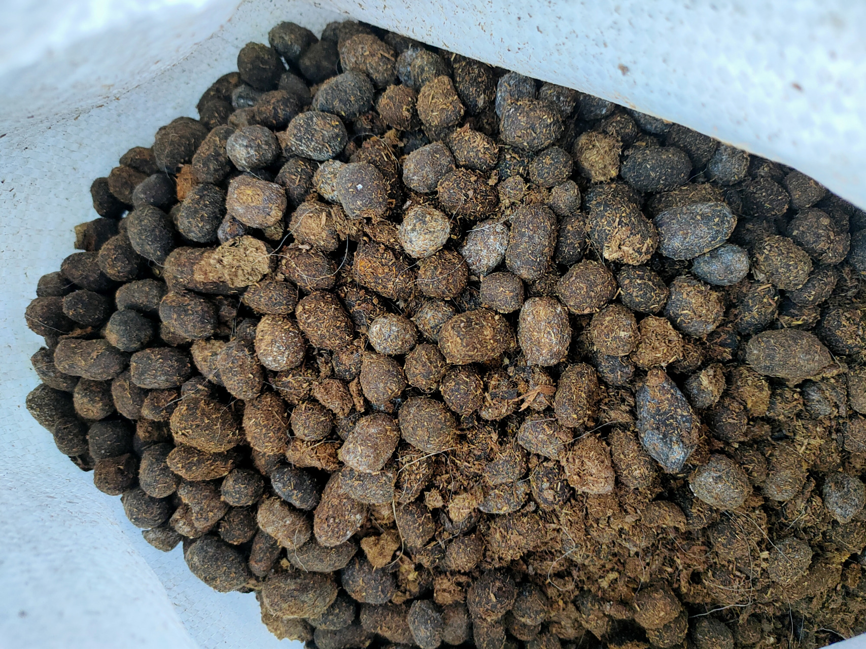 看状态:发酵好的羊粪是黑褐色、松散的颗粒或粉末状,没有原来的形状。