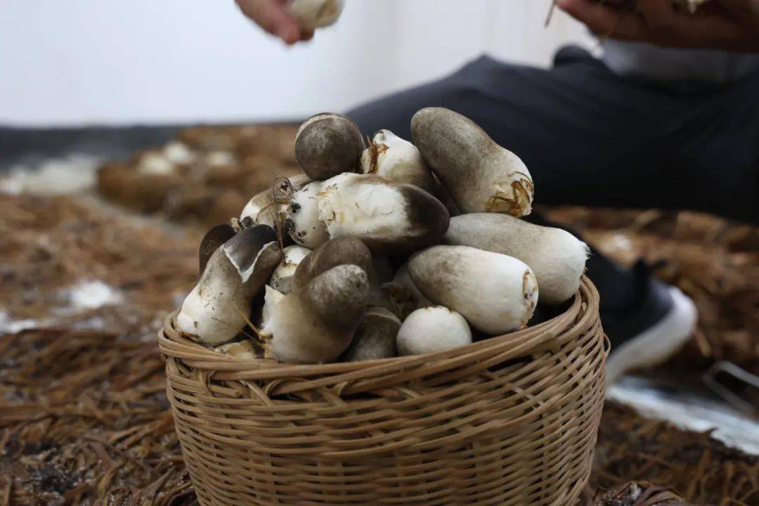草菇长得特别快,现蕾后5天–7天就能采。要在菌膜没破、菌柄粗壮时及时采收,用手轻旋拔出。