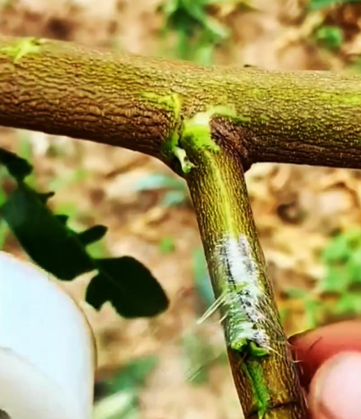 接穗要选取母树外围向阳处的当年生新梢,剪取中上部饱满的芽段,长度10-15厘米为宜。切记要随采随用,如果需要运输,记得用湿布包裹保湿。