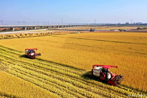 金秋时节,广袤田野上处处洋溢着丰收的喜悦。智能收割机在田间穿梭,农民们忙碌地收获着沉甸甸的粮食。今年风调雨顺,粮食生产形势喜人,预计将创下历史新高。