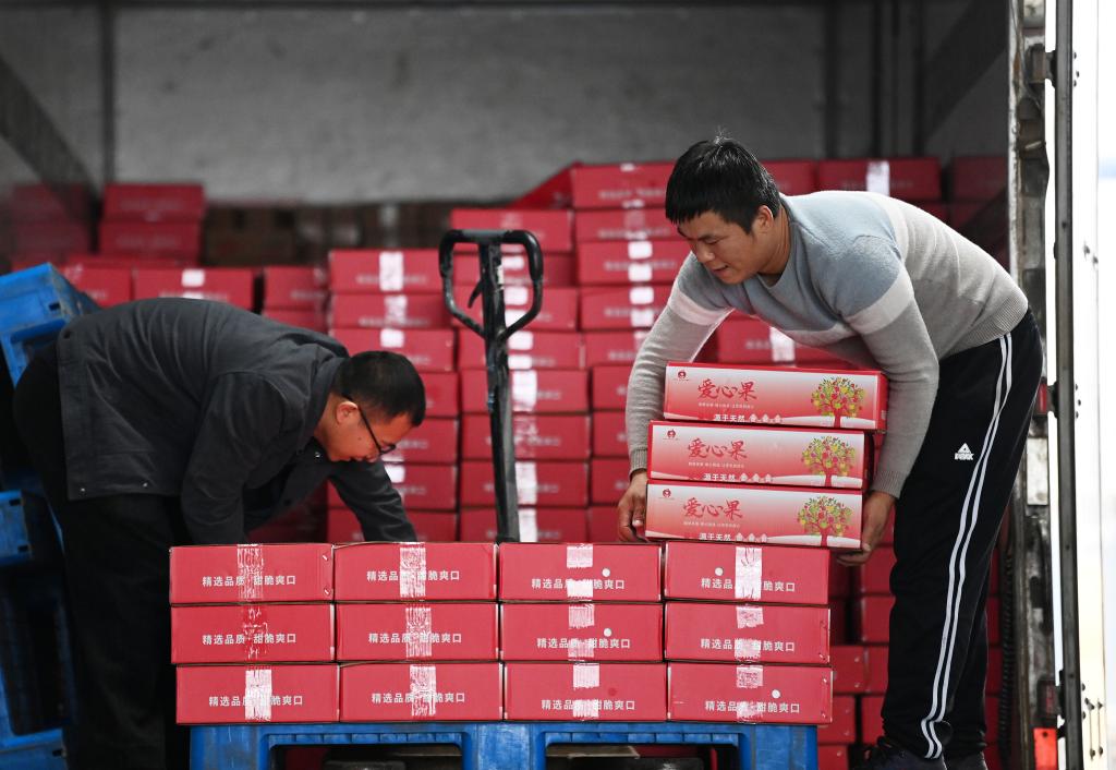 “现在是销售旺季,我们每天要处理大约60万斤苹果。”盛隆果业副总经理韩继龙介绍,“前几天我们尝试了直播带货,效果很不错,二十分钟就卖出了两万多盒。除了国内市场,我们的苹果还出口到泰国、马来西亚等十多个国家和地区。”