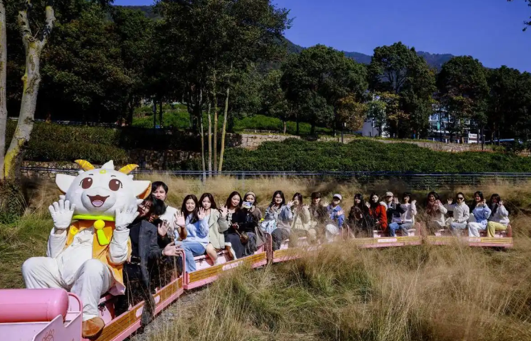 随着一声响亮的汽笛声,载着金华山吉祥物“黄金羊”和高校学生代表的小火车缓缓开动。由摄影家、高校学子、网红达人等组成的百人巡游团,沿着提前设计好的路线,开启了一场沉浸式的踏秋之旅。他们先在鹿女湖水杉栈道上留下秋天的身影,接着到LULUPARK自然公园用秋叶制作手工艺品,最后在海拔818米的“天空之镜”许下秋日的美好心愿。这一场场互动体验,让原本静态的秋景变得生动起来,游客们的欢声笑语和美丽的秋光一起被定格。