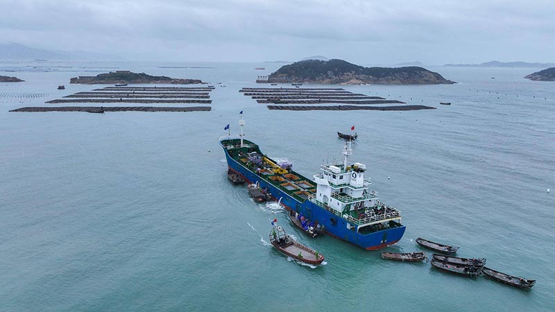 12月20日,一艘长度约92米的大型活水运输船缓缓驶入福州连江苔菉国家中心渔港。船舱内装载的3万笼鲍鱼,在山东荣成等北方海域度过夏季后,顺利返回家乡海域。这些鲍鱼将在此进行冬季养殖,预计春节前部分可上市销售。