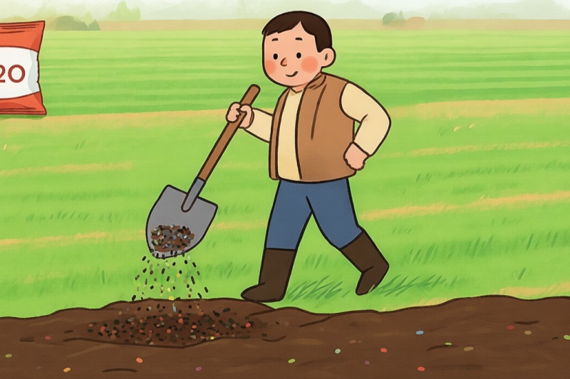 整地的时候,先把钾肥均匀撒在地上,紧接着用拖拉机犁地或者用旋耕机打地,把它翻到土里去。这其实是“撒”和“埋”的结合,效率高,适合大面积操作。