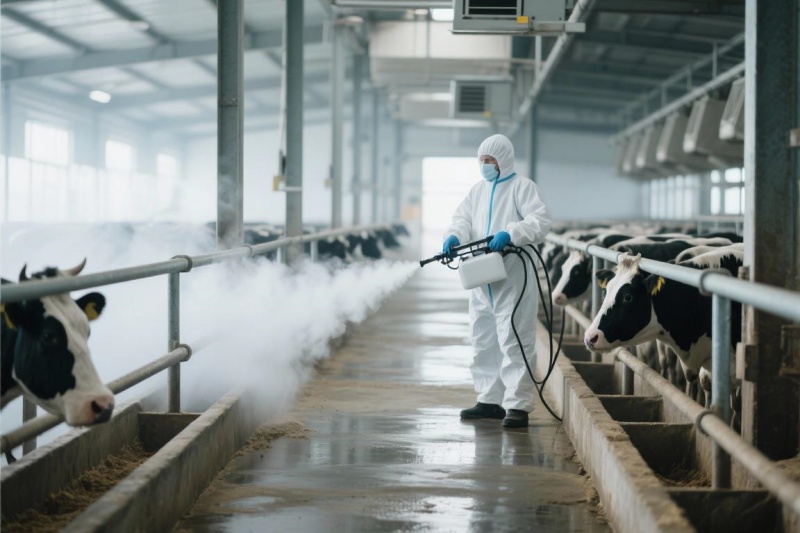 消毒前没清洁:牛粪、饲料残渣、污泥等有机物,会严重降低甚至完全抵消消毒剂的效果。直接喷药等于做无用功。