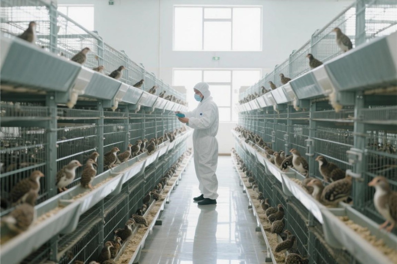 环境安静:鹌鹑天性胆小,对震动和噪音极其敏感。场地应远离主要交通干道、工厂、施工区等噪声源。过度的应激会导致产蛋率骤降、免疫力下降。