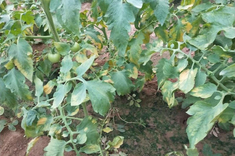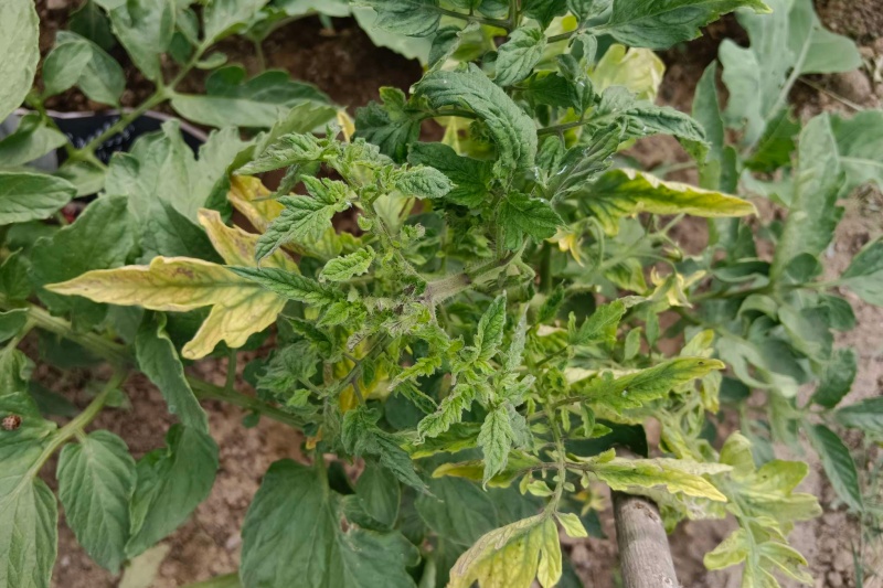 西红柿、辣椒等蔬菜:顶部幼叶黄化,叶脉保持绿色,可能出现灰黄色斑点,影响开花坐果,导致果实小、畸形、口感差。