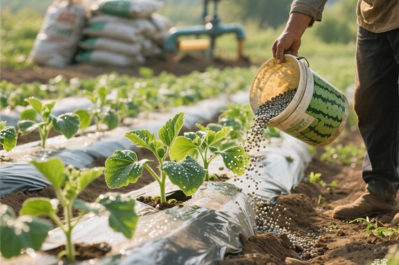 明白了西瓜要什么,咱们再来看该给什么。农家肥或商品有机肥是“地基饭”:在整地时,每亩施入充分腐熟的农家肥(如牛羊粪、猪粪)2-3吨,或者商品有机肥300-500公斤。这顿饭管得久,能缓慢持续地提供全面营养,改善土壤疏松度和保水保肥能力,是西瓜口感风味的物质基础。记住,生粪绝对不能用,会烧根、滋生病虫害。