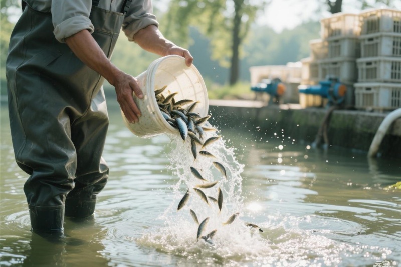 很多鱼病其实是苗种阶段就带进来的。春季放苗时,一定要做好苗种检疫和消毒。挑选健康苗种有几个要点:体色鲜艳有光泽,体表完整无损伤,游动活泼反应快,规格整齐一致。如果发现鱼苗有白点、烂鳍、或者离群独游,这样的苗坚决不能要。