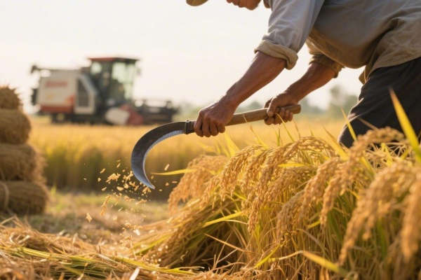选择了正确的时间,还需要配合正确的收获方式,才能将田间的产量转化为仓库里的粮食。人工收割相对灵活,对水稻成熟度要求更为严格,一般需达到完熟期。收割时留茬不宜过短,捆扎后需在田间就地晾晒数日,促进后熟并降低水分,然后再进行脱粒。