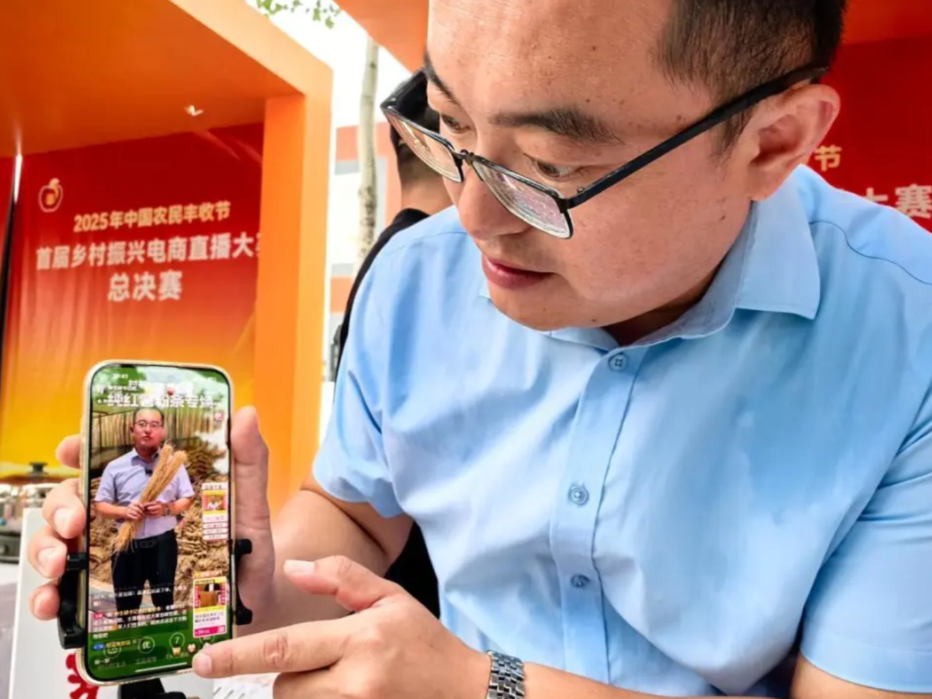 “家人们,这红薯是咱山里沙土地种的,软糯香甜,今天下单还送花茶!”“威海刺参刚上岸,泡发率高、胶原满满,手慢真没了!”9月23日,在招远市大户陈家村举办的丰收节全国主场活动现场,一场别开生面的村书记直播带货擂台赛火热上演。7位来自山东各地的村支书轮番上阵,手机一开、三脚架一架,直播间秒变助农大卖场。