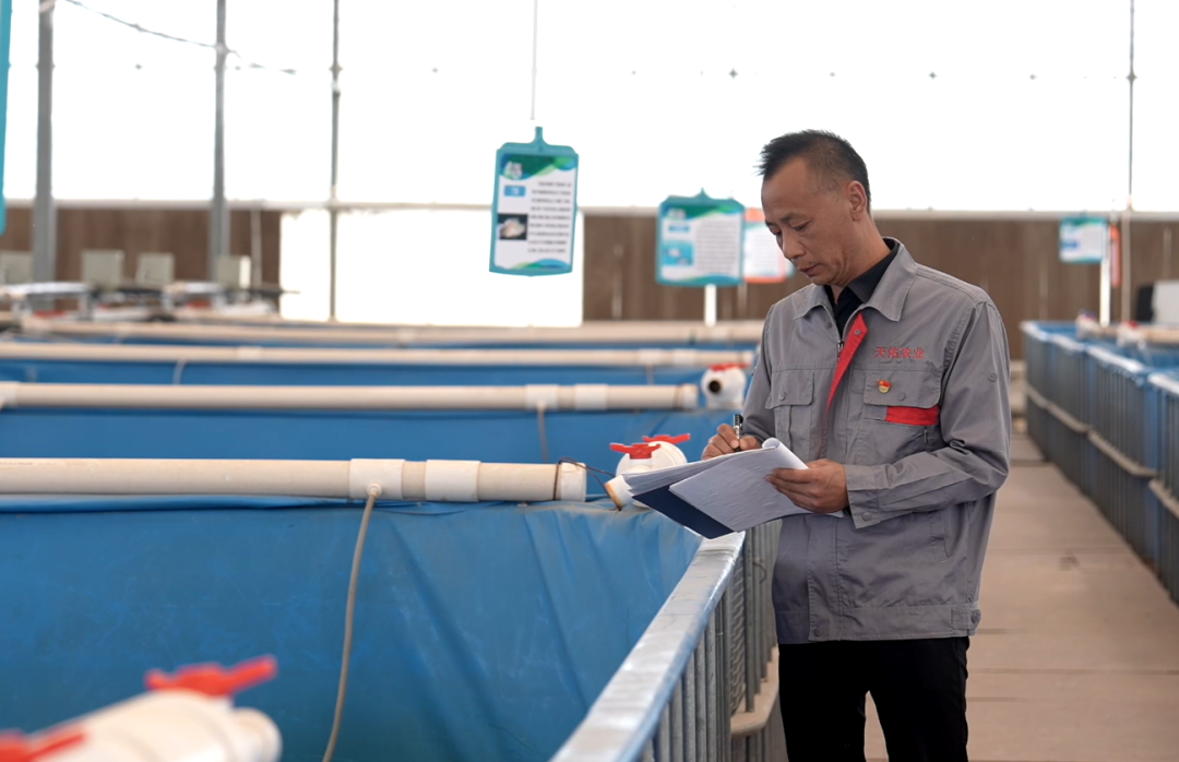 转型水产养殖,陈勇几乎是从零开始。他四处收集黄河流域治理盐碱地的成功案例,奔赴山东、河南、湖北等地向养殖户和科研单位请教,还带着水样找内蒙古农业大学的专家指导。经过多次考察学习,他把原有的阳光温室和废旧大棚升级成工厂化养殖车间。之后,他又不断扩建场地、更新设施,最终打造出总面积近两万平方米、总水体量近两万立方米的标准化养殖车间。施工时,他既当设计师又当施工员,从车间布局到管道接口调试,都亲力亲为。