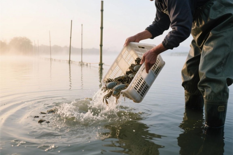 消毒处理要科学。放苗前可以对苗种进行消毒,预防疾病。常用方法有食盐浸泡(2-3%浓度,浸泡5-10分钟)或聚维酮碘浸泡(按说明书浓度)。消毒要在调节水温后进行,操作要轻柔,时间要严格控制。