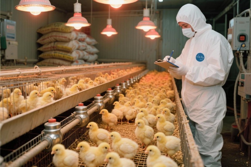保温设备是最关键的。根据育雏数量准备足够的保温伞、红外线灯或暖风机。进雏前24小时开始预热,使舍内温度稳定在33-35℃。同时检查饮水器、料槽是否充足,每100只雏鸡需准备3-5个饮水器和2-3个料槽。