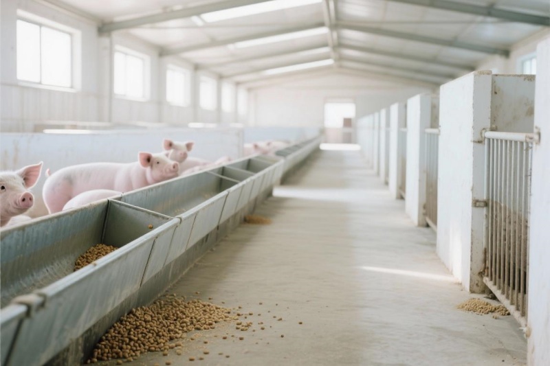 定时定量饲喂生长期猪每天饲喂3次,育肥期可改为2次,每次饲喂时间固定,每次喂量基本一致,这样有助于猪形成规律的采食习惯,提高消化吸收效率。