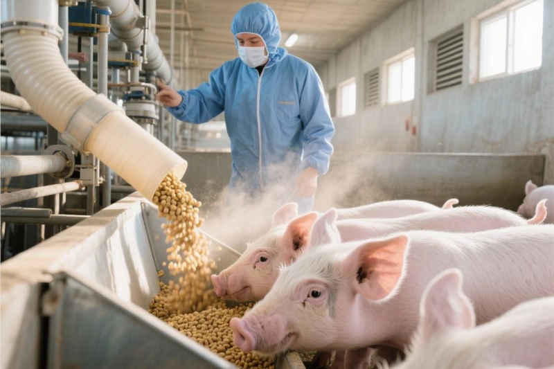 干粉料容易造成浪费,也影响消化。建议料水比控制在1:1.5-2,拌好后立即饲喂,夏季可稍稀,冬季稍稠。