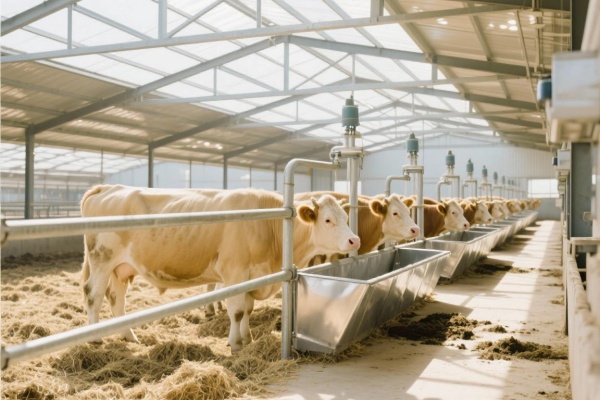 水源安全要保障:保证牛随时能喝到干净、充足的饮水。水槽要定期清洗消毒,被污染的水是重要的疾病传播源。