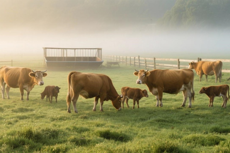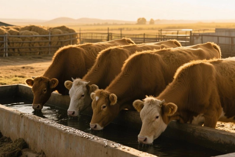 保证充足饮水:成年牛每天需水30-60升,夏季更多。定期清洗水槽,冬季提供温水。