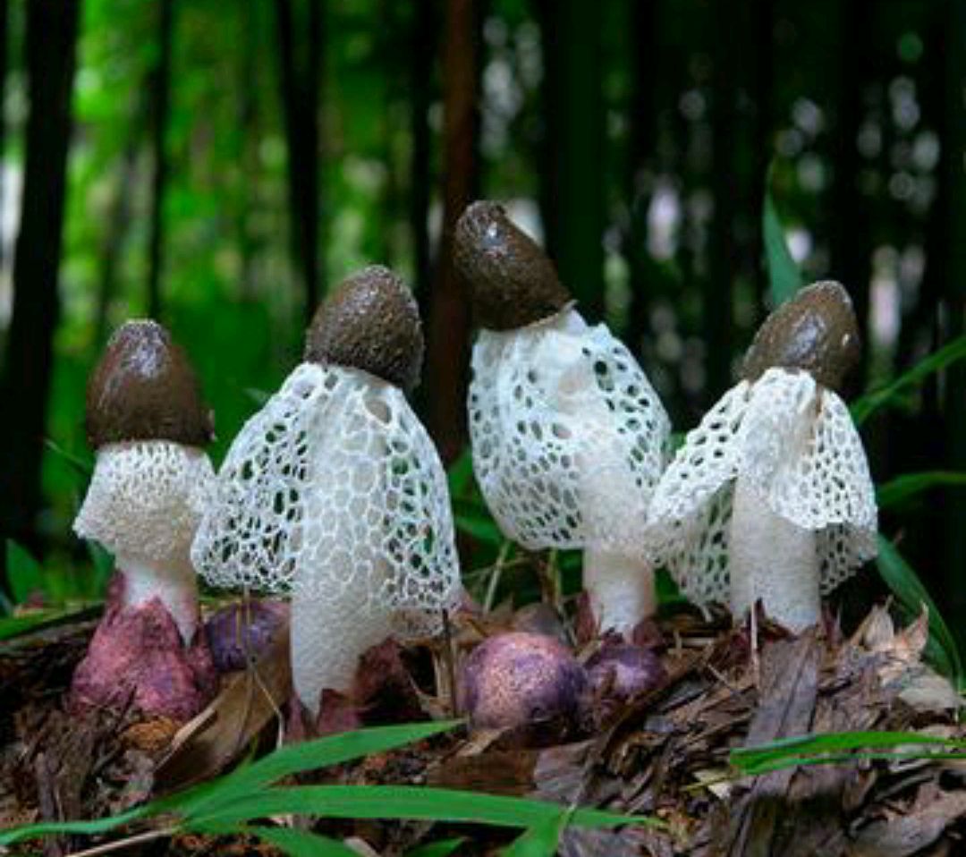 经过三年试种,我筛选出这三个最适合竹林下种植的品种,个个都是耐阴好手,还不跟竹子抢营养。首推竹荪——竹林里的黄金菇