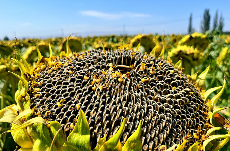 在这片万亩连片的葵花种植区,种植户王多宝正带着工人有条不紊地进行收割作业。他的额头上渗着细密的汗珠,顺着脸颊滑落,浸湿了后背的衣衫,但这丝毫没有影响他脸上的笑容。“你看这葵盘,多大,籽粒又饱满,今年这收成肯定差不了!”王多宝用布满老茧的手拨开一个葵盘,金黄的葵花籽一粒挨着一粒,仿佛要溢出来。他告诉记者,往年人工收割、晾晒要耗费大量人力和时间,而且葵花的含水量高,稍不注意就容易发霉。今年镇上推广了新技术,从播种到管理再到收获,全程都有专业指导,这让他心里踏实多了。