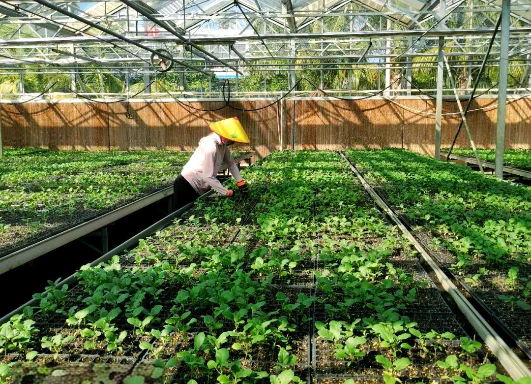 产业的发展,离不开科技的强劲驱动。三亚充分利用南繁育种资源优势,积极开展苦瓜、番茄、黄灯笼椒等作物的新品种引进与示范,攥紧农业的“中国芯片”。在种苗供应环节,市农科院育苗基地及集中育苗大户承担起“中央厨房”的角色,每季计划工厂化培育优质瓜菜种苗不少于1000万株,并以优惠价优先供给脱贫户等群体,有效降低了农户的育苗成本和风险。