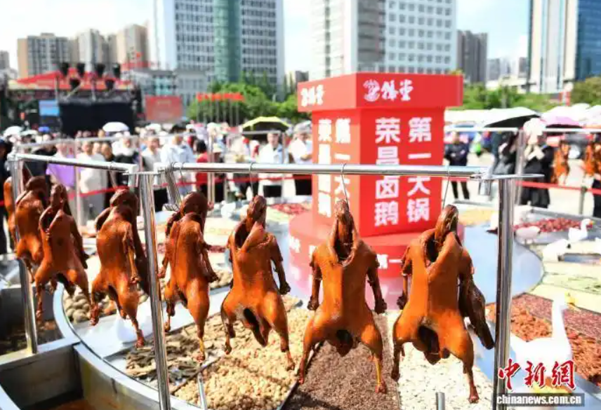 荣昌卤鹅的火爆就是典型案例。2025年4月30日,荣昌举办“千年荣昌·2025年荣昌卤鹅非遗美食消费季”活动。当地紧抓“卤鹅经济”热点,建立升规升限企业培育机制,强化对重点商贸企业的动态监测与精准服务。荣昌区商务委数据显示,当地卤鹅总产能提升至1200万只,还涌现出销售收入突破2亿元的龙头企业。荣昌卤鹅区域品牌价值大幅提升,全网相关话题曝光量超600亿次,区域品牌搜索量提升150%。