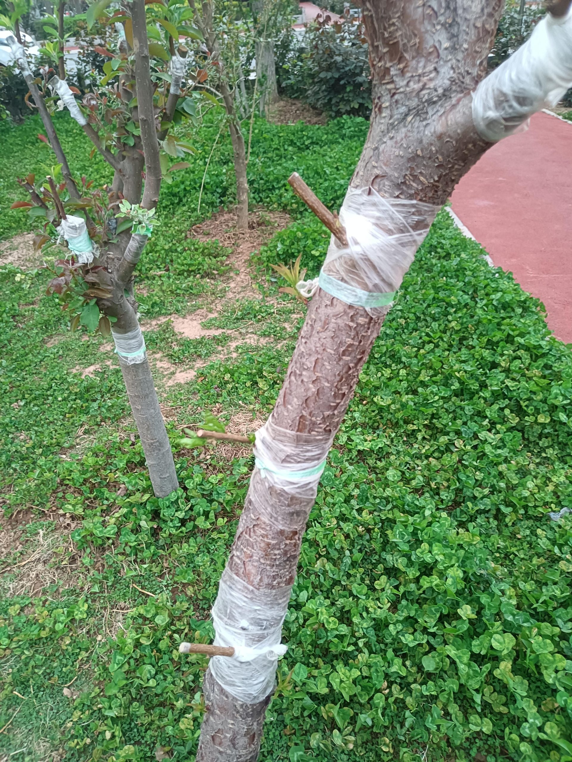 嫁接时要避开雨天,选择连续晴天进行操作。如果遇到突发降雨,要用防水袋临时遮盖接口。控制好嫁接深度,不要伤及木质部过多,否则容易引发流胶病。嫁接后可以在砧木基部环割1-2刀,这样能减缓树势,促进养分向接芽集中。