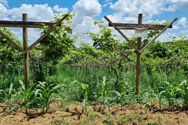 T形架的横梁宽度0.8-1米,栽培面高度1.2-1.5米。"巨峰"用这种架式效果很好,结果均匀,不容易出现大小粒。
