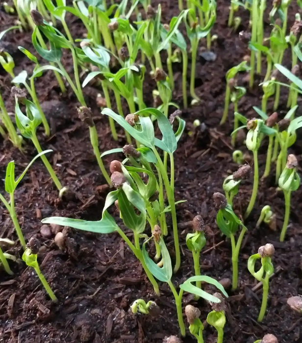 一般采用穴播或条播,每个穴里放2-3粒种子,盖土厚度大约3-5厘米。