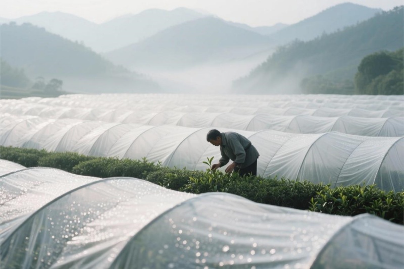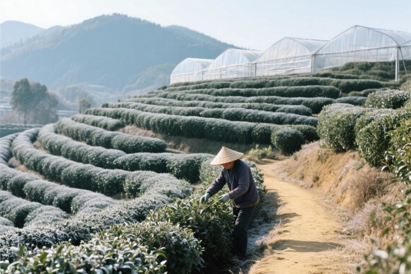 薄膜搭建:规模化茶园可采用塑料薄膜搭建简易棚架,形成“小温室”。浙江安吉某茶园通过薄膜覆盖,使春茶采摘期提前5—7天。