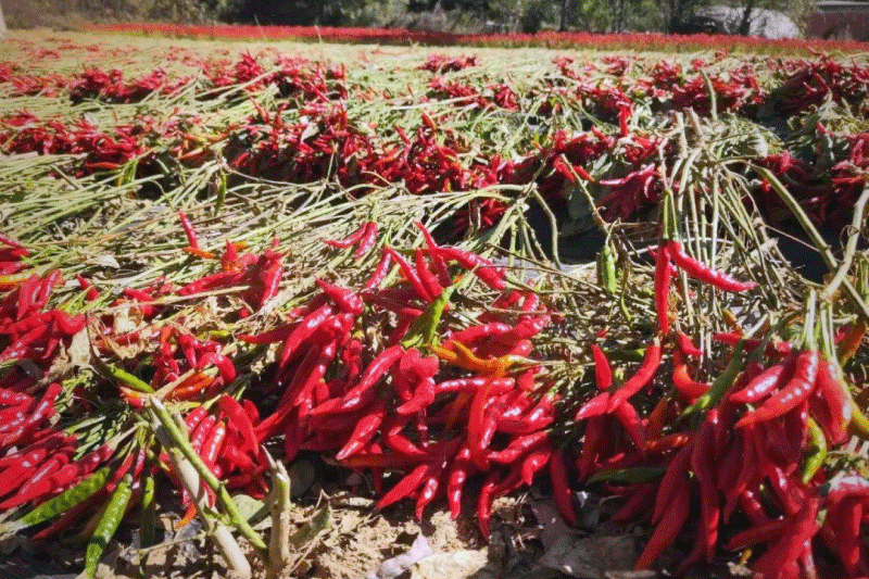 当朝天椒的果实变成深红色,质地变硬的时候,就可以采摘啦。采摘的时候,最好在晴天上午进行,这样采摘下来的果实水分少,容易保存。采摘的时候,要用手轻轻捏住果实,往上提,不要用力拉,以免损伤植株。采摘完后,要及时进行分级包装,然后销售或者储存。