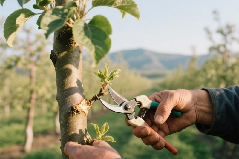 疏除密生新梢:对于主枝背上、剪锯口周围萌生的过多、过密的新梢,尤其是直立徒长的“霸王梢”,要及早疏除,防止其扰乱树形、消耗养分。