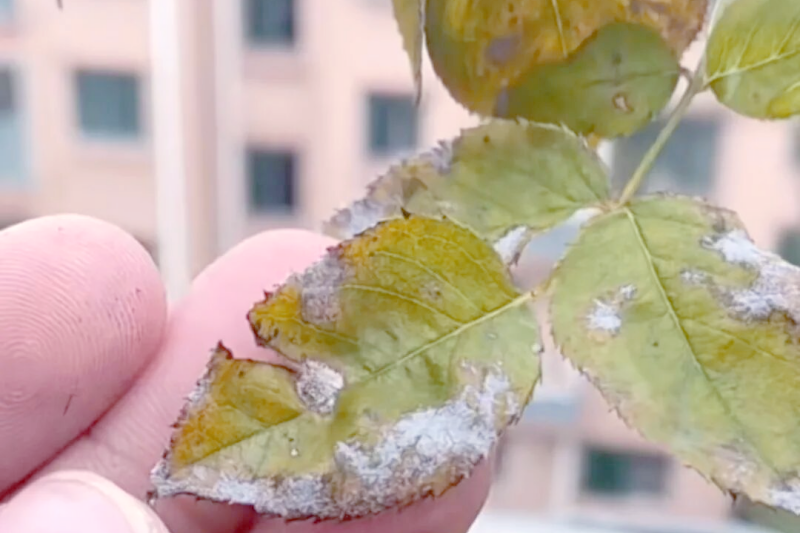 长什么样:嫩叶、嫩枝和花苞上,像被撒了一层白粉或白灰,严重时叶子会卷曲变形。