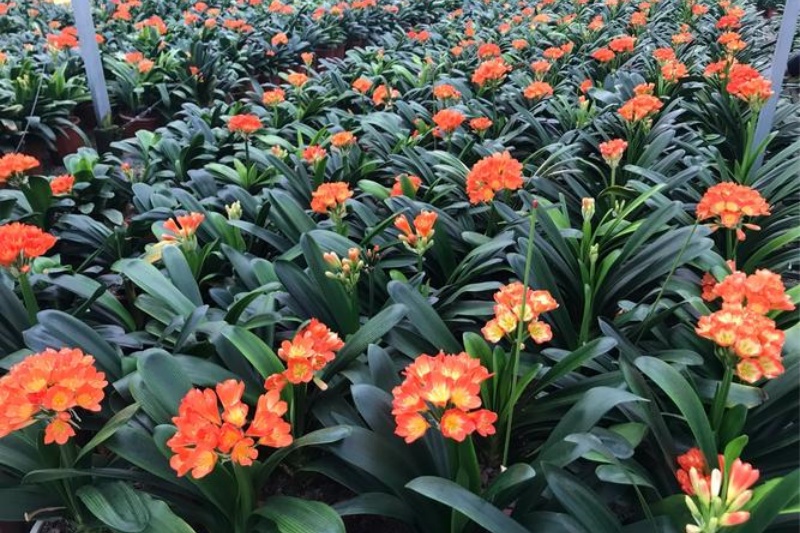君子兰怕强光、怕闷热、怕积水。你的大棚需要:遮阳网必备:夏天遮光率70%以上,春秋50%左右
