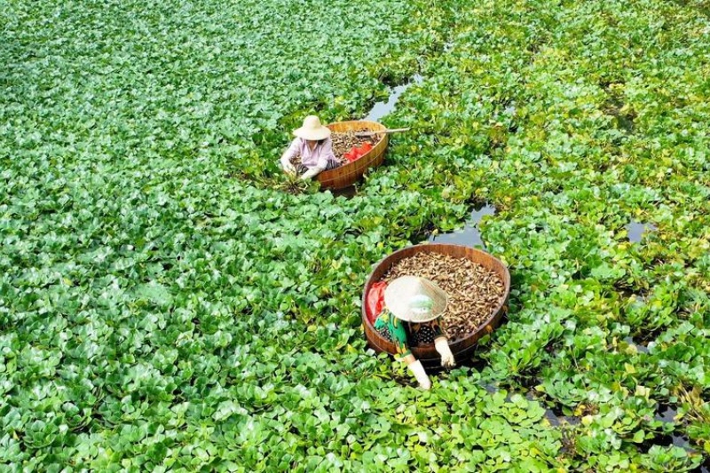 清理杂草:定期看看水面有没有水葫芦、浮萍等杂草,及时清理掉,别让它们跟菱角抢空间和营养。